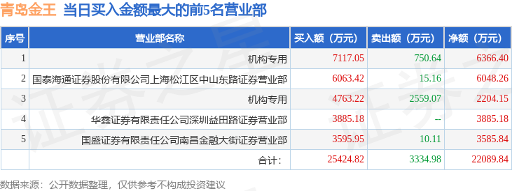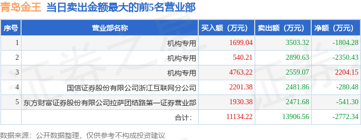 证券之星消息股票配资风控股票配资风控,沪深交易所2025年5月22日公布的交易公开信息显示,青岛金王(002094)因日换手率达到20%的前5只证券登上龙虎榜。此次是近5个交易日内第2次上榜。